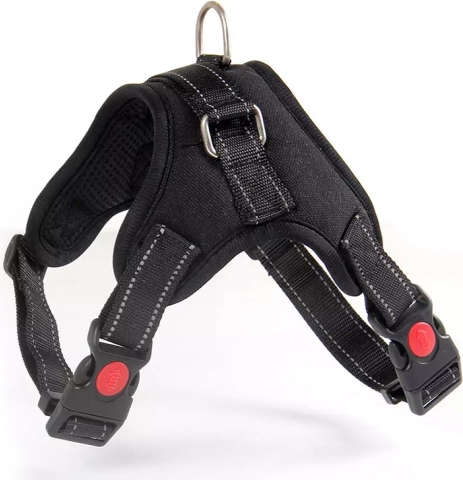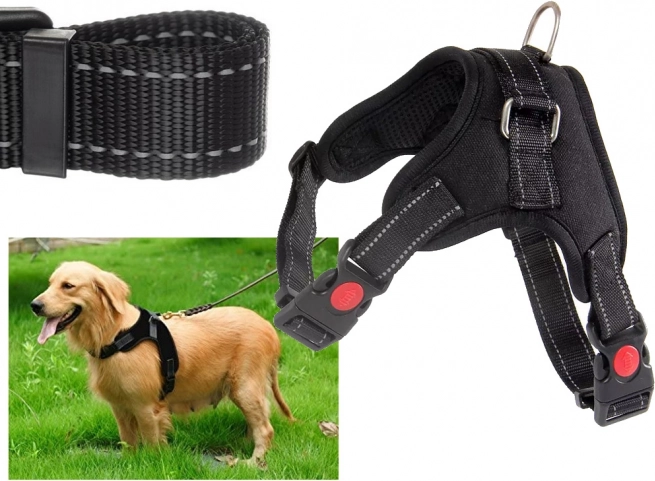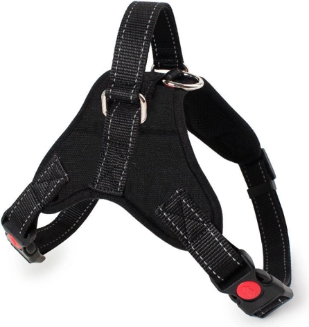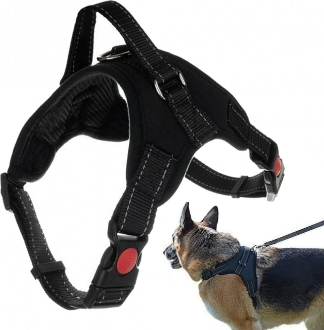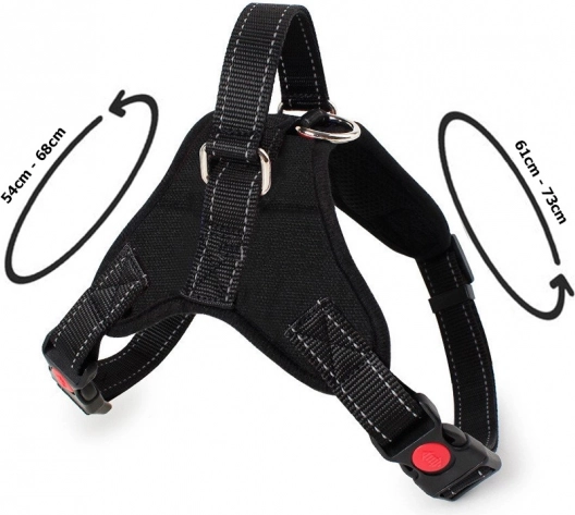 Popruh postroja je prešitý reflexnými niťami, pes je po zotmení lepšie viditeľný, čo zvyšuje bezpečnosť nášho miláčika.