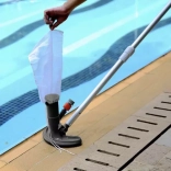 Ergonomická hlavica s tvrdým čistiacim vlasom a polmesiacovým tvarom ľahko kopíruje dno aj hrany bazéna. Opakovane použiteľný sáčok stačí po upratovaní vysypať a znova nasadiť – žiadne ďalšie náklady na spotrebný materiál.