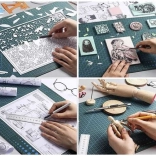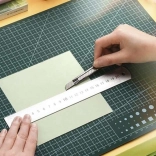 Obojstranné meracie mriežky, uhlové a kruhové vodiace línie zrýchlia vyrovnanie materiálu a zlepšia presnosť. Protišmykový materiál drží pevne na mieste, takže môžete bezpečne pracovať s rezačom, skalpelom aj rotačnou rezačkou.