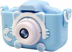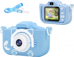 Fotoaparát je navrhnutý s dôrazom na pohodlné držanie v detských rukách a obsahuje silikónové puzdro s dizajnom mačičky, ktoré chráni pred pádmi.